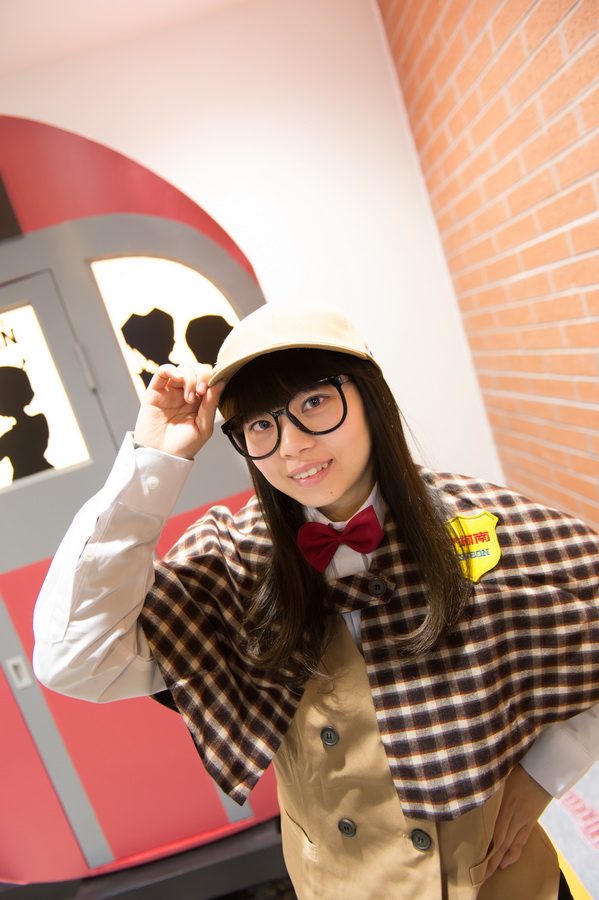 随着其他几位领导的致辞和剪彩仪式的结束,等待已久的粉丝们瞬间挤满了店堂。有拿着答题卡四处寻找答案的,有排队参加甜点蛋糕畅吃的,有挑选柯南正版书籍和周边的,有兴高采烈地试穿少年侦探团服装道具的。吸引最多粉丝目光和镜头的是店里那尊柯南的塑像,以及有轨电车和电话亭的布置,大家纷纷上前合影留念。不一会儿收银处已经排了长长的队伍,一身少年侦探团打扮的工作人员热情地为大家服务着,还有几位热情的粉丝身着COS服出现在了现场,其中更有一位全身黑色,只露出双眼和嘴的角色——是的,这正是《名侦探柯南》系列中最经典的犯人形象,“黑衣人”的出现赢得了无数的欢呼,也谋杀了现场媒体与粉丝们无数的快门,整个店堂都沉浸在浓浓的欢乐气氛中。