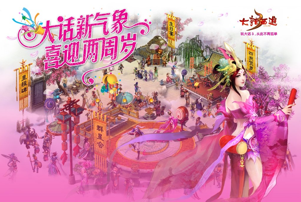 《大话3》已经在大家深深的关爱中迎来了她两周岁的生日,从出生到成长到今天的过程中,大家伴随着大话3一路走来付出了汗水、艰辛、动荡、包容和爱,始终不离不弃。2007年8月推出至今,《大话3》以细腻精致的游戏画面、感人肺腑的主角背景故事、引人入胜的剧情任务、丰富多彩的节日和周末活动、还有深厚的游戏内涵获得玩家的一致肯定。游戏以“为爱西行”为主线,带你体验西行路上的情与爱,邀你一起,重走取经路。《大话3》的18主角以不同的爱恨情仇抒写着爱的主旋律,您是否也曾被青衫那为爱舍生的无私,杀破狼为护小画魂的舍身取义,水玲珑那为救民于水火的大义凛然所感动呢?2008年10月《大话3》推出首部资料片“宝象国奇缘”,2009年5月推出第二部资料片“羽化飞升”,受广大玩家的青睐!在09年CJ的舞台上,《大话3》COSER们的出色演出引来了观众的喝彩,争先欣赏《大话3》的唯美气质。