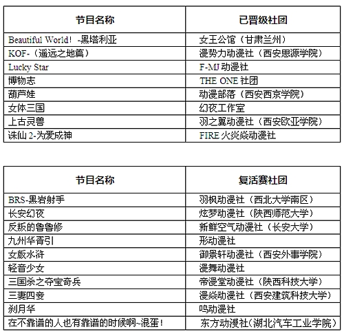 2011 ChinaJoyCosplay嘉年华西安分赛区决赛&复活赛名单揭晓