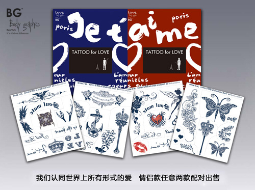BG,全称是Body graphics,音译过来是“宝蒂格拉菲”,简称“BG纹身贴”。