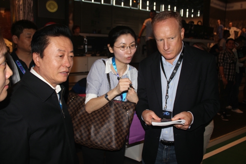 由国内主要游戏企业组成的中国国家展团首次高调亮相德国科隆游戏展(GamesCom 2012)。国家新闻出版总署孙寿山副署长赴现场考察,并与中国国家展团各参展企业以及全球游戏企业代表见面。
