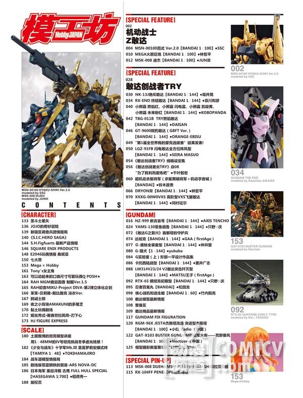 《模工坊》四周年零两个月,伴随着炎热夏天的到来,热情再次持续升温中(是不是觉得这个开篇特别木有节操,吼吼),超多的读者调查问卷依然在源源不断的飞来编辑部,小编表示心情无比激动,感谢老读者们一如既往的支持和新读者们对我们的赏识!这个月又迎来了两件大事,机动战士Z敢达30周年啦(我们UC党真的都老了)和机动战士敢达THE ORIGIN第一话终于放出了。木头兵已经彻底被可爱的阿尔黛西亚萌化了。虽然我已经到了没有机会有妹妹的年龄了……