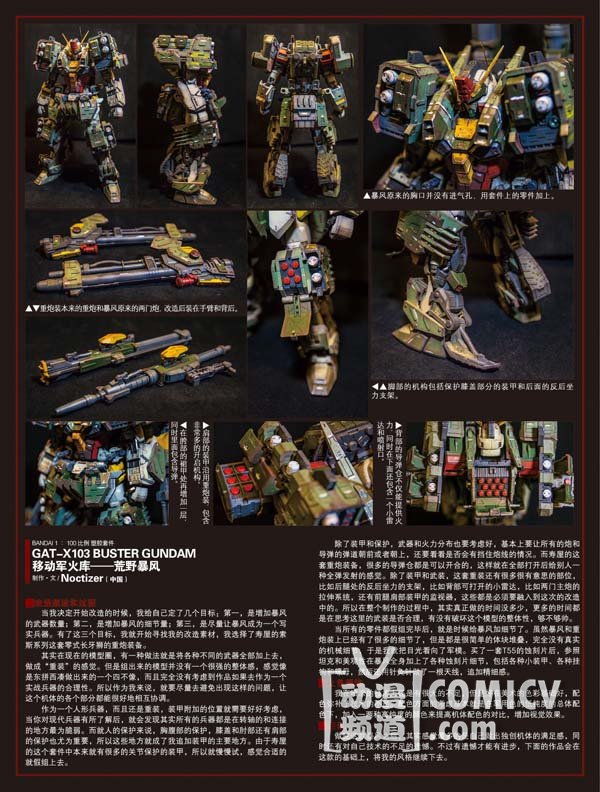 本期新人小红带来了他的第二代重装机体——突进型杰斯塔,和上一次比起来进步很多,此次改造的复杂而不凌乱,配设和logo贴纸使用的恰到好处。另外第一次在模工坊刊载作品的Noctizer同学,第一次投稿就带来了非常了不得的作品《移动军火库——荒野暴风》,从改造、涂装到摄影都非常成熟,当然,最大的亮点是他还非常擅长为模型照片添加特效,不就的将来《模工坊》还会为读者们带来Noctizer同学的特效教程,一起期待一下吧!