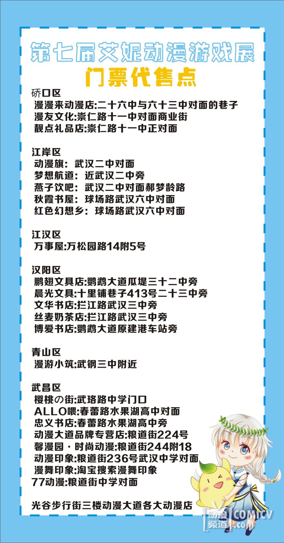 展馆现场全天空调,免费存包处,快来与武汉各大高校社团评新番话今朝,攻略游园祭游戏勇夺奖品,参加三大比赛谁与争锋!