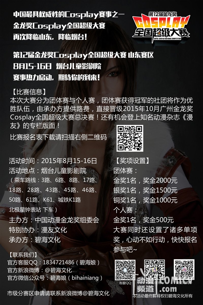 2015年第12届金龙奖Cosplay全国超级大赛山东赛区嘉宾公布!