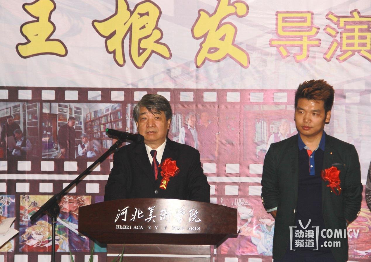 王根发导演在讲话中表示这些原创的资料素材是来源于人民,也应该归还人民,希望通过此次捐赠,激发老师和同学们对原创动画的热情。河北美术学院校长对王根发导演的捐赠表示感谢,并希望全体师生向王根发导演学习,从这些宝贵资料中提取精华,提升我校动画创作水平。