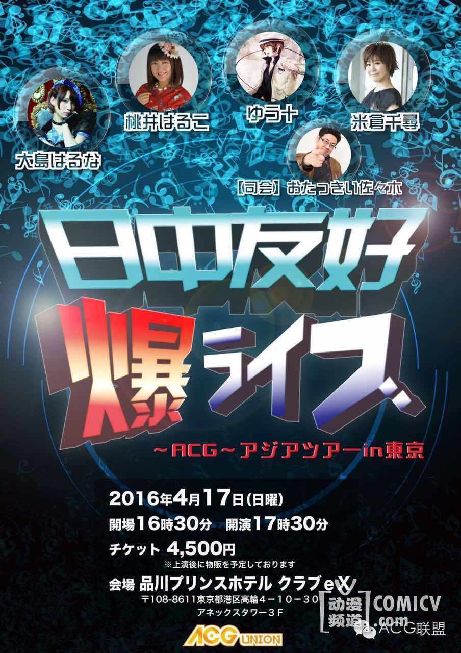 ACG联盟的2016ACGlive亚洲巡演正式开始!第一站东京站将在4月17日于东京的クラブeX抢滩登陆!这标志着中国的二次元展演品牌第一次走出国门!登陆日本!