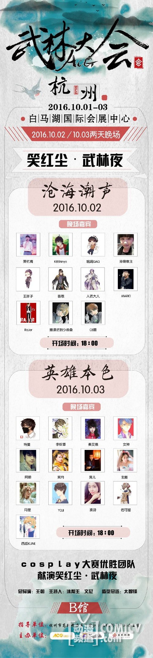 10月2日&10月3日晚场笑红尘·武林夜,众星云集,联袂两晚,更有cosplay大赛优胜团队献演,精彩不容错过!