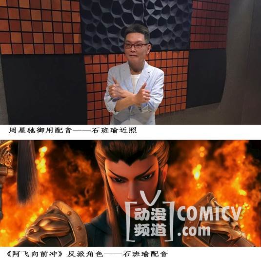 记得那段经典对白:“曾经有一份真诚的爱情摆在我的面前,但我没有珍惜……”跨越500年的情感对话打动了多少女孩子的心,这段75%的真诚,加上25%的虚伪的配音——石班瑜先生倾情参与该片反派角色的配音。记者采访了该片导演马建,他说,自己是周星驰电影的忠实影迷,在从事动画工作后,周星驰电影中角色古灵精怪的配音、招牌式夸张的笑声就觉得十分的卡通,熟悉周星驰电影的都知道,业界有“台前周星驰幕后石班瑜”的说法。首先是出于情怀和角色的塑造把星爷的御用配音石班瑜请出来参与本片,其次石先生参与了周星驰1989年以来的几十部影视剧以及其他知名影片的配音,角色把握精准。在参与该片配音的过程中,我们导演组和石先生一起对人物性格和情绪表达不断地揣摩。动画片的配音和实拍人物配音还是有本质的区别,所以人物角色的配音中既要保留特色又要给观众新鲜的元素。
