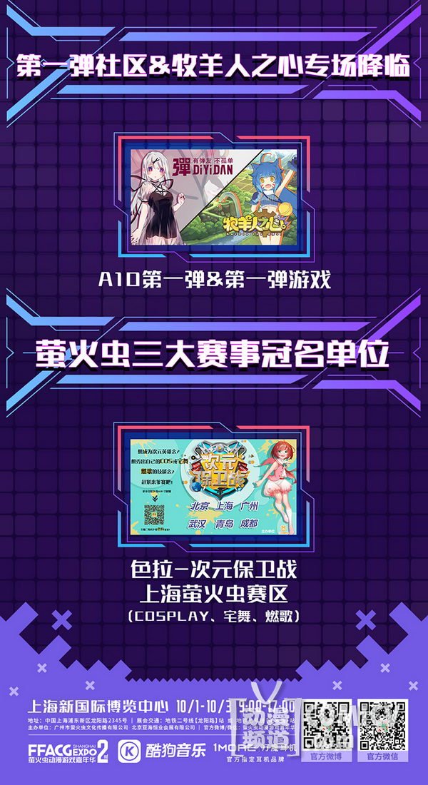10月1日-3日,上海新国际博览中心,酷狗蘑菇·萤火虫动漫音乐嘉年华上海站02即将震撼开场!萤火虫携近百二次元超红星齐聚魔都,给你带来前所未有的视听盛宴,更有豪华展商阵容惊喜亮相,会场福利拿到手软!一起来看看吧!