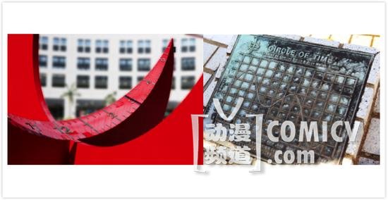 学校正门的标志雕塑,动画在原型的基础上做了一些调整,但真实的标志其实大有乾坤。仔细地看雕塑的上方,印有时间刻度,其实这是一个日晷,配合旁边的日照波动表,可以看出日晷上的阴影正好展现出小编拍摄照片的准确时间,果然,科技的细节无处不在。