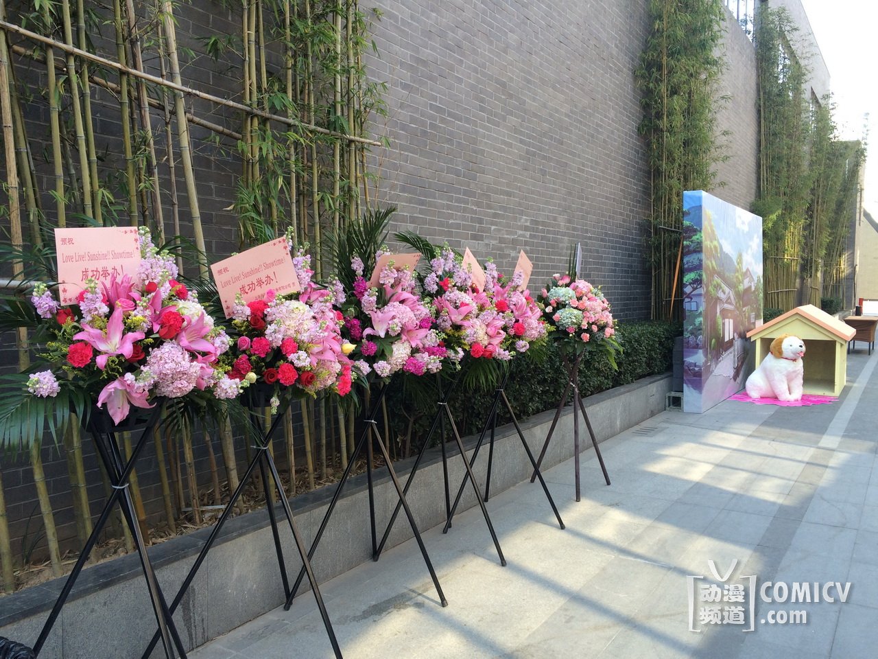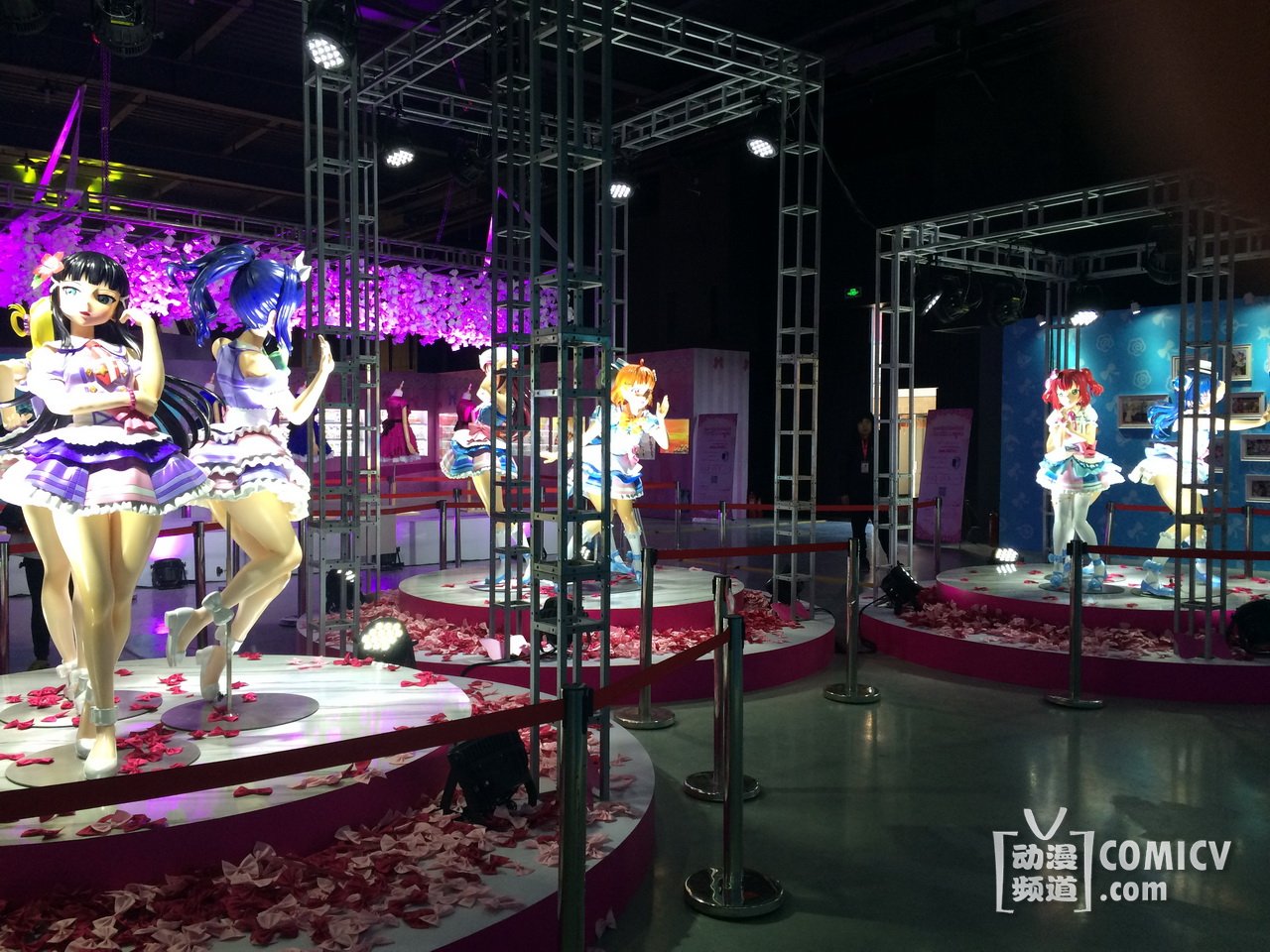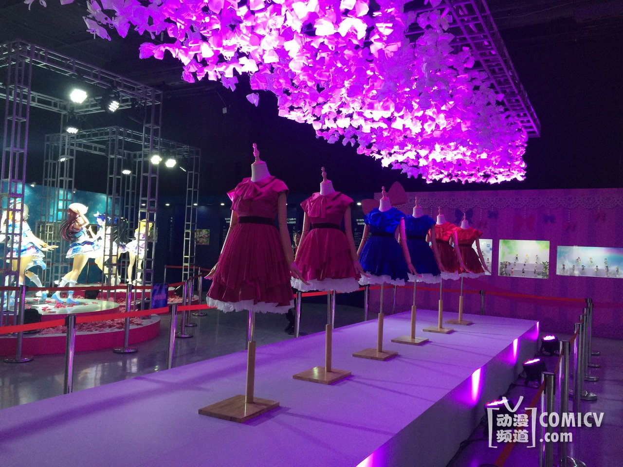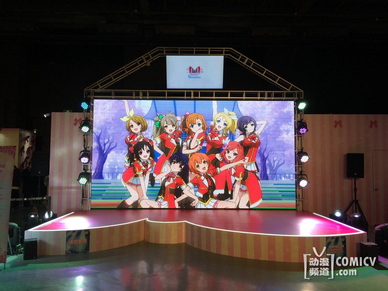 企划展现场的入口是本次“Love Live! Sunshine!! Showtime”的LOGO大门,入口长达20米左右的隧道是由无数的蝴蝶结所组成的“L o v e L i v e”字样,另外一边的五线谱飞扬的蝴蝶结像一个个脚印,正缓缓走向走廊尽头的舞台!