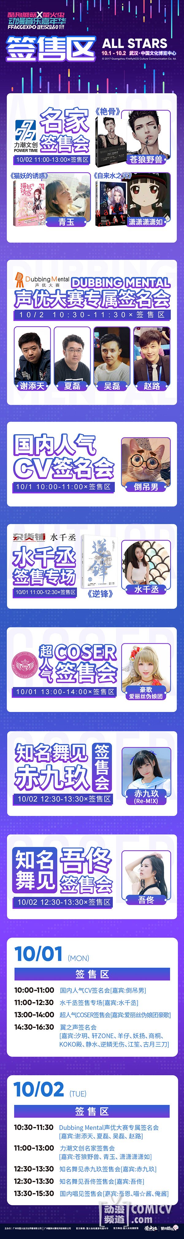 力潮文创人气作者:苍狼野兽、青玉、潇潇潇潇如,著名写手水千丞,超人气COSER爱丽丝伪娘团豪歌,知名舞见赤九玖(Re-M!N)、吾佟也将在签售区进行签售!