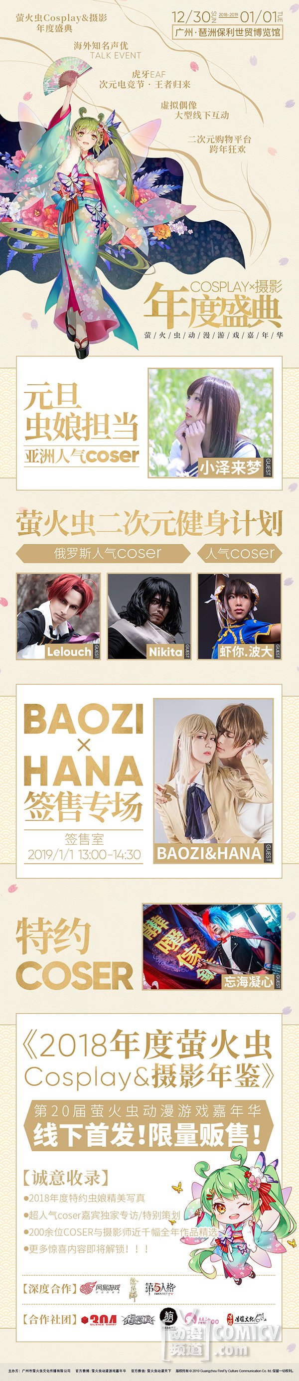 2018年12月30日-2019年1月1日,广州保利世贸博览馆5、6号馆,第20届萤火虫动漫游戏嘉年华火热筹备中!众多重磅新企划为你的2019带来新气象!