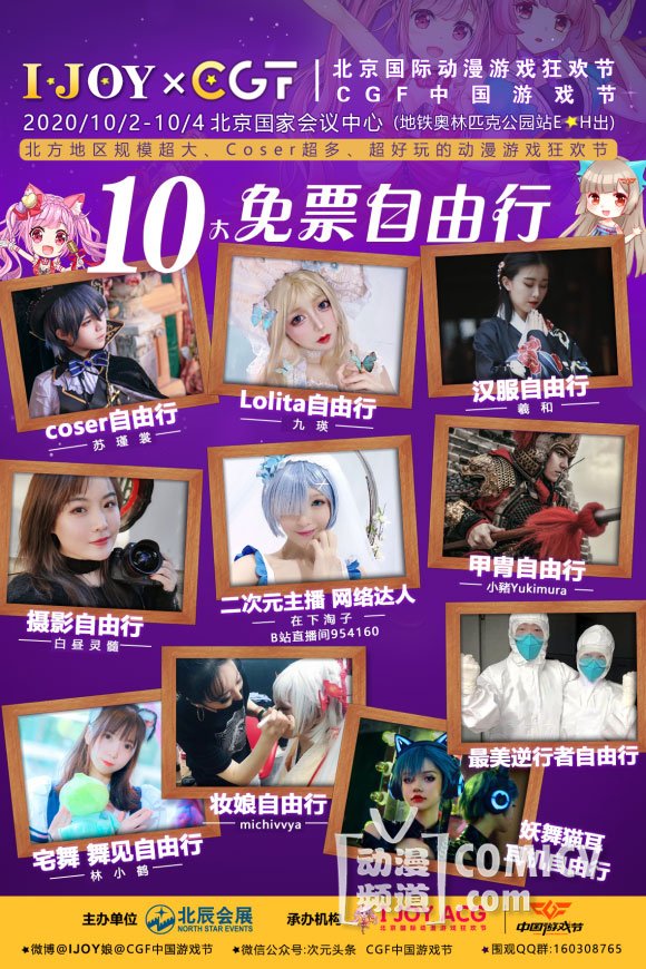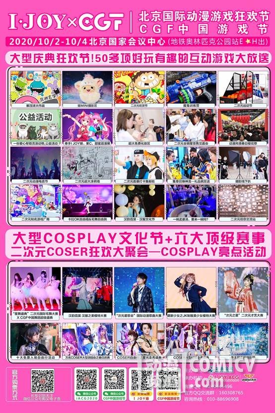集章召神龙——礼品疯狂送活动(官方咨询处)、国庆节二次元数万元礼品免费送不停、十大免票入场自由行活动福利,畅玩全场、万名COSER大型游园会之秋季狂欢曲、IJOY×CGF六大大型红毯走秀盛典、多主题大型超大涂鸦墙、卡拉OK自由唱&宅舞自由跳&二次元广场舞大典&二次元元?体操大典、IJOY×CGF二次元动漫电音节、秋日の浪漫曲Lolita主题摄影专区、小甜心多主题实景摄影专区——你爱的小棚子这里全都有、二次元解压球球大作战之向压力大魔王尽情发泄吧!二次元信息交流站、趣味套圈物语、绘马祈福,给你最棒的爱情运势、幸运投壶,鼠年给你“鼠”不尽的好运、大型动漫主题乐园之砰砰枪plus精准度训练营、大型动漫主题乐园之软弹枪威力战斗训练营、大型动漫主题乐园之愤怒的小鸟攻城大作战、大型动漫主题乐园之弯弓搭箭骋沙场,百步穿杨这一箭、 二次元运动节、 牵手IJOY娘、果C打卡面基处甜蜜逛漫展、超大免费化妆变身区 二次元吃货大赛、8090怀旧游戏机体验、超级VIP休息区、小姐姐宅舞教学区、I JOY×CGF福利——小姐姐暖心服务处、娃mini场景拍照区、一份爱心,帮助流浪动物——公益礼品兑换活动。